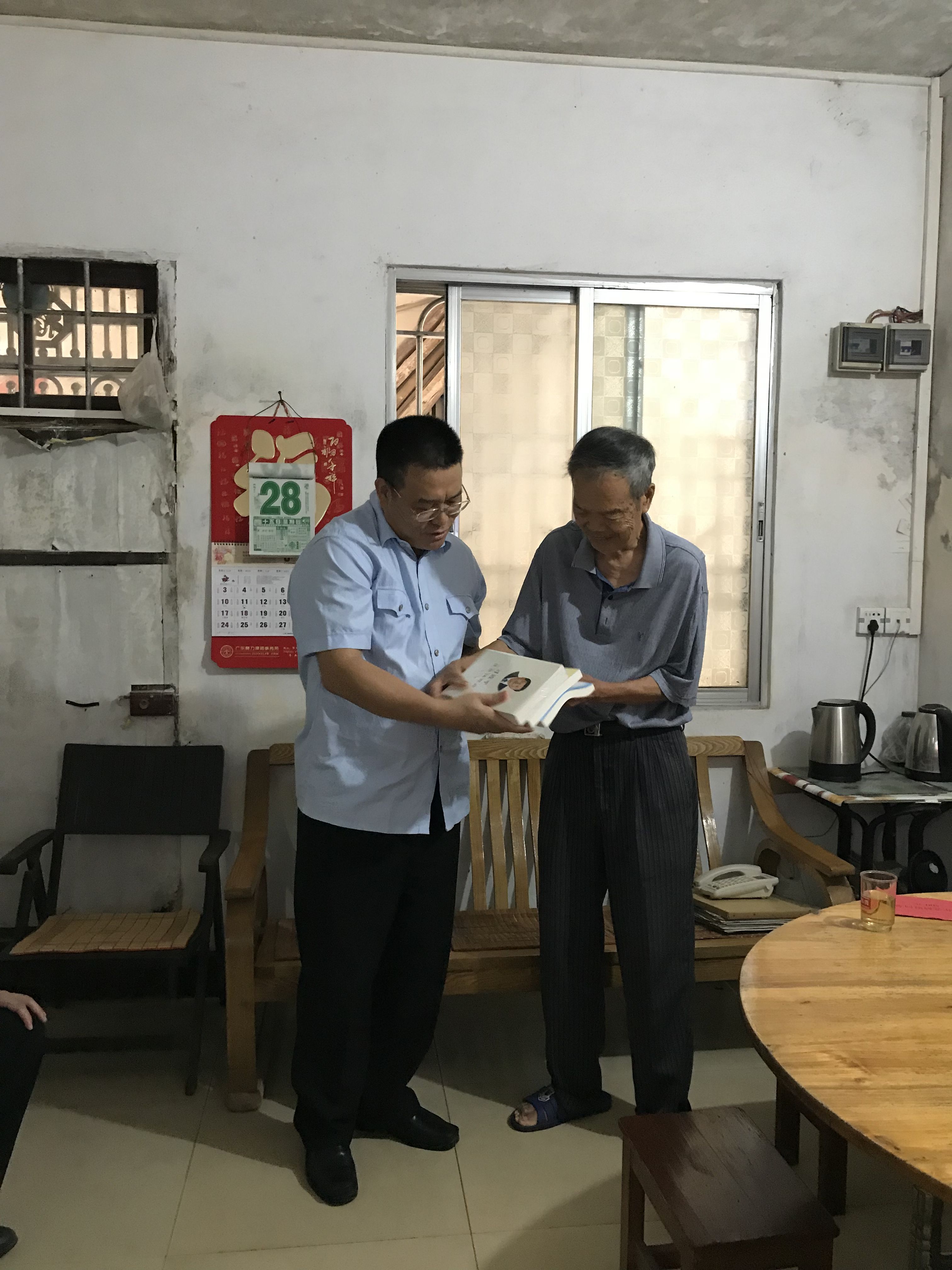 ▲ 谢天恩院长探望怀集法院老党员、老院长黎国彦,并赠送《习近平淡治国理政第二册》等书籍