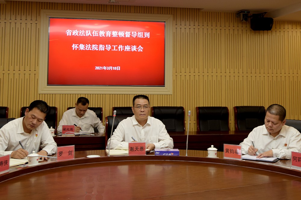 3月18日下午,省教育整顿驻肇指导组到怀集法院督导队伍教育整顿工作,并对下一步工作的开展进行指导。