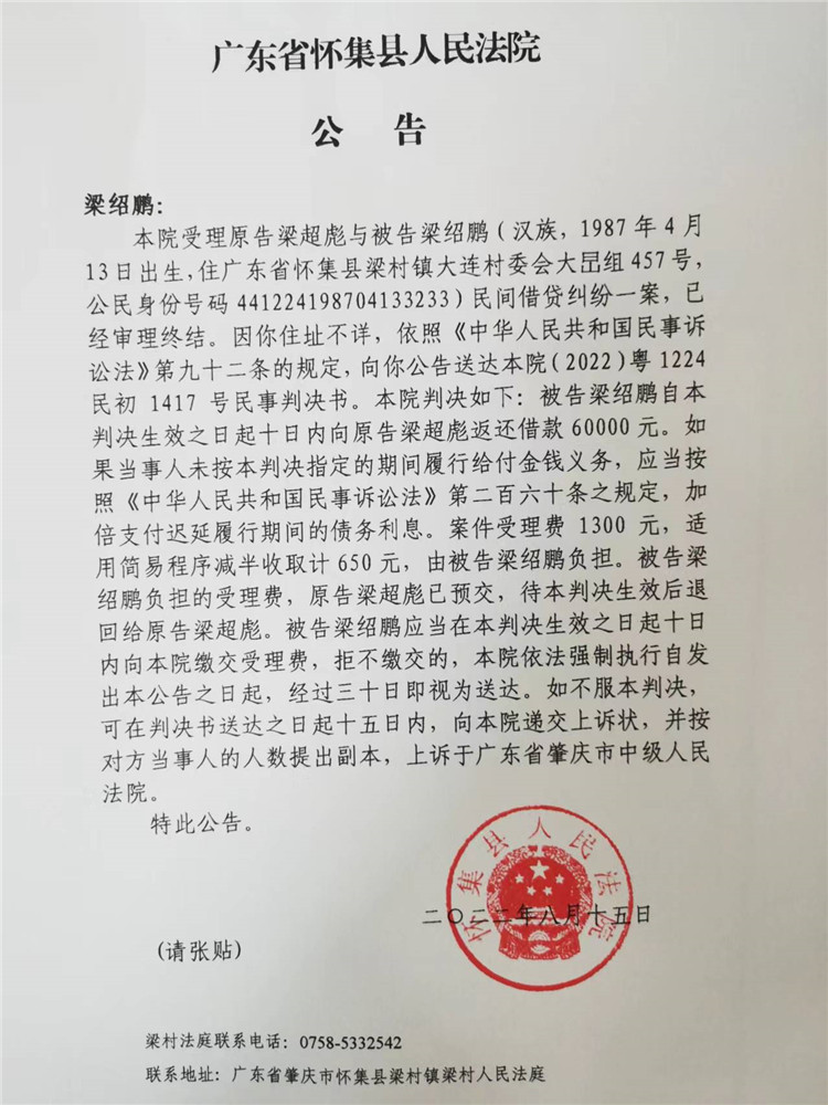 怀集县人民法院拟递补录用劳动合同制审判辅助人员公示
