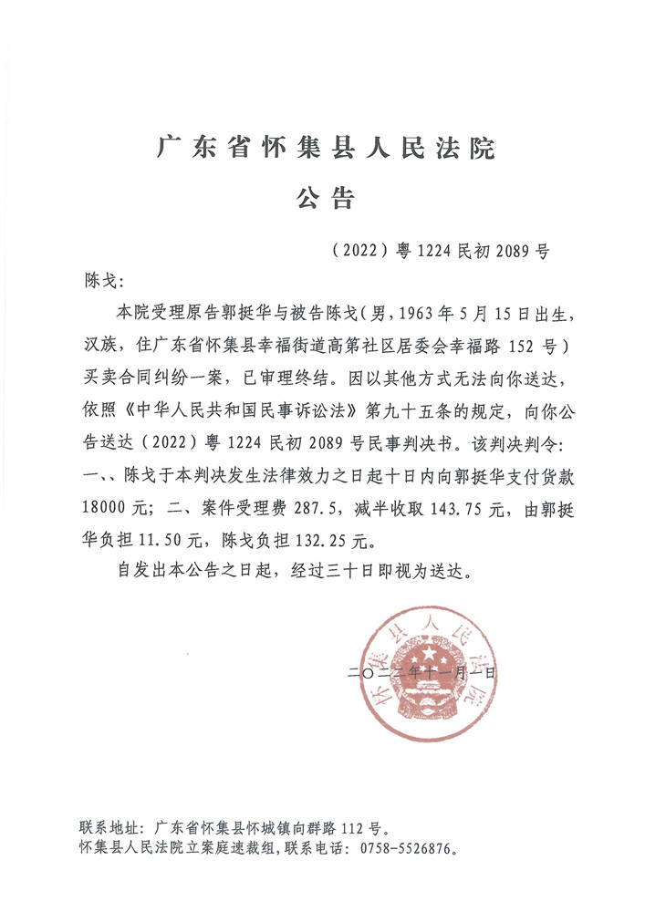 欢迎访问广东省怀集县人民法院官方网站!