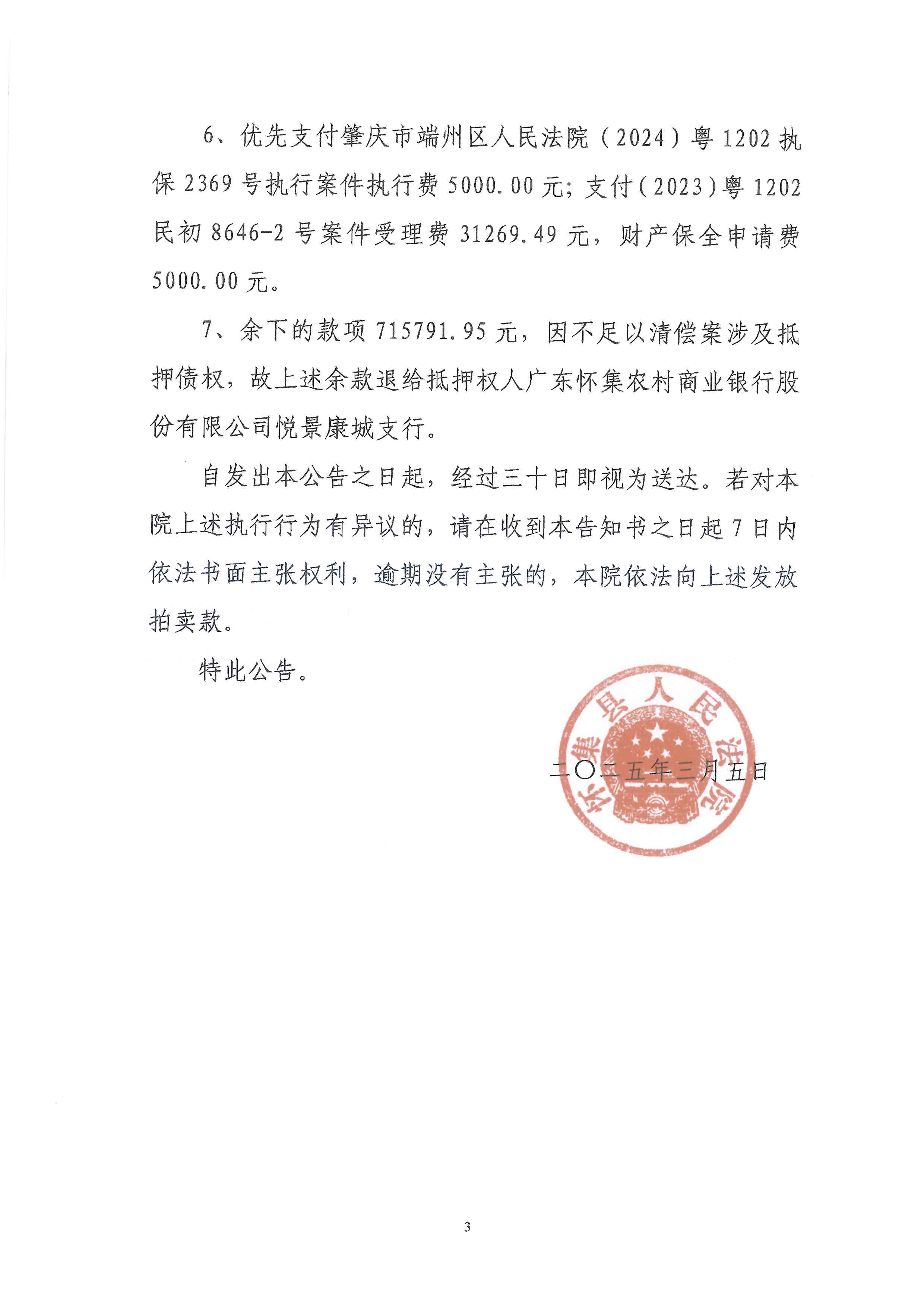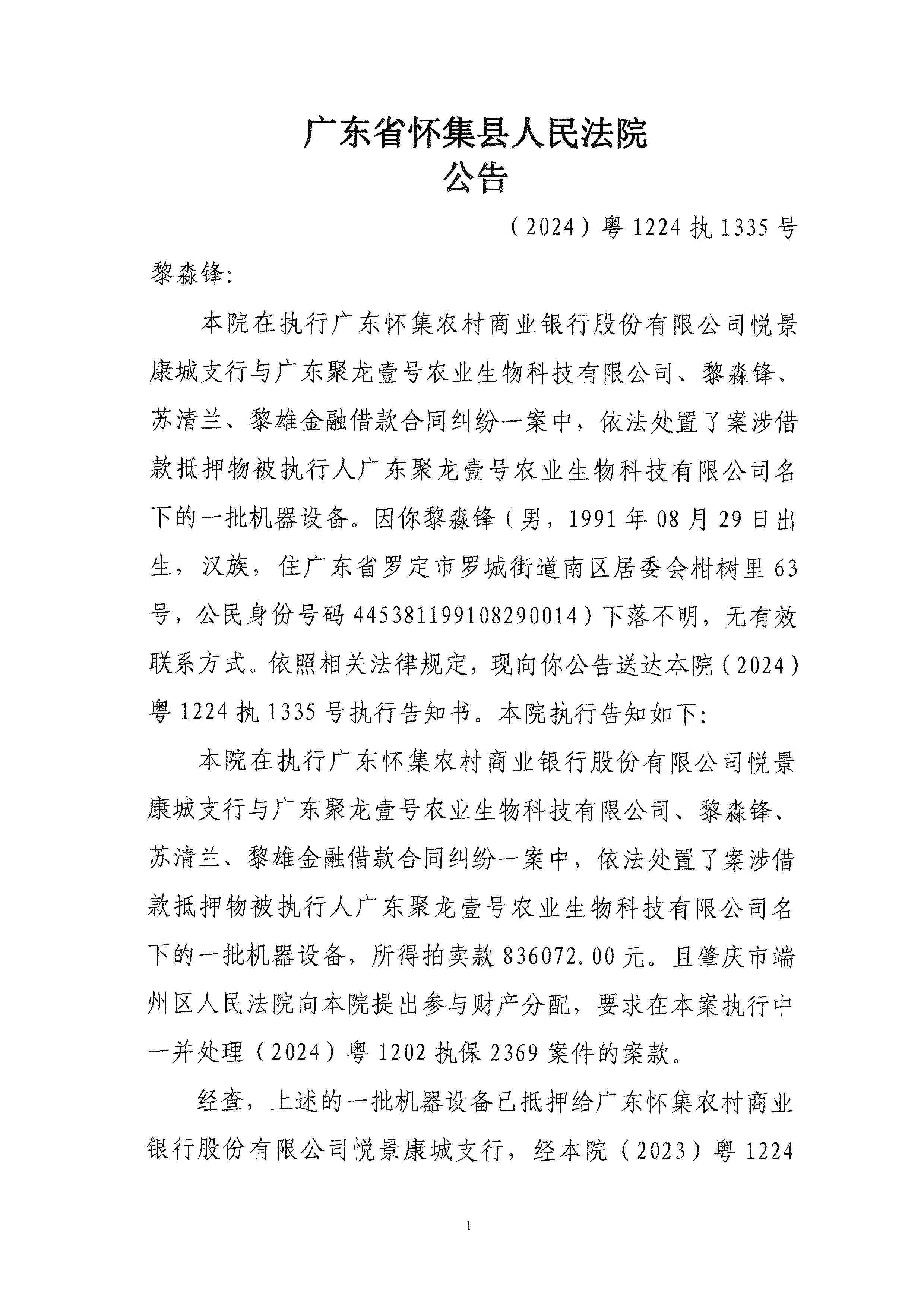 (2024)粤1224执1335号案件公告