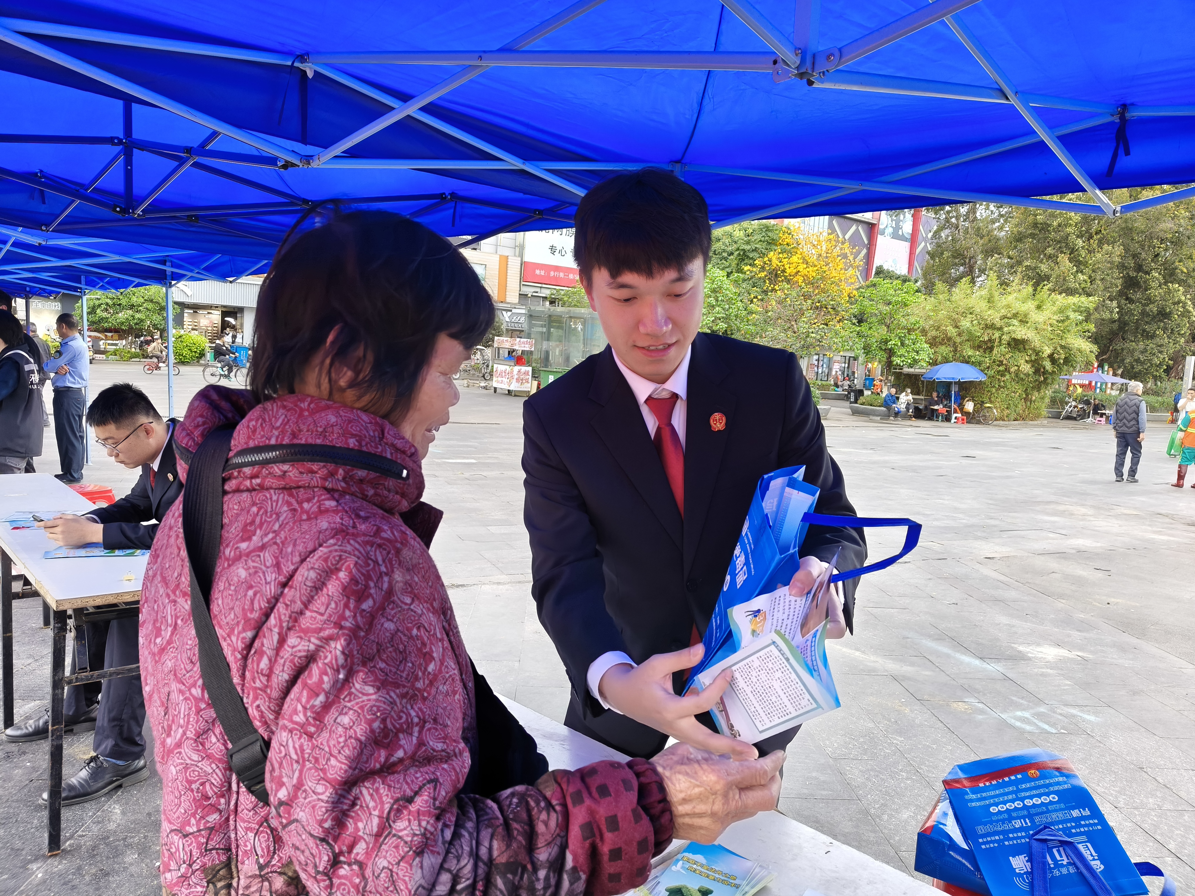 3月15日,怀集法院组织干警走进县城燕城广场开展普法宣传活动,通过“零距离”答疑、“接地气”普法,为市民送上法律“定心丸”。