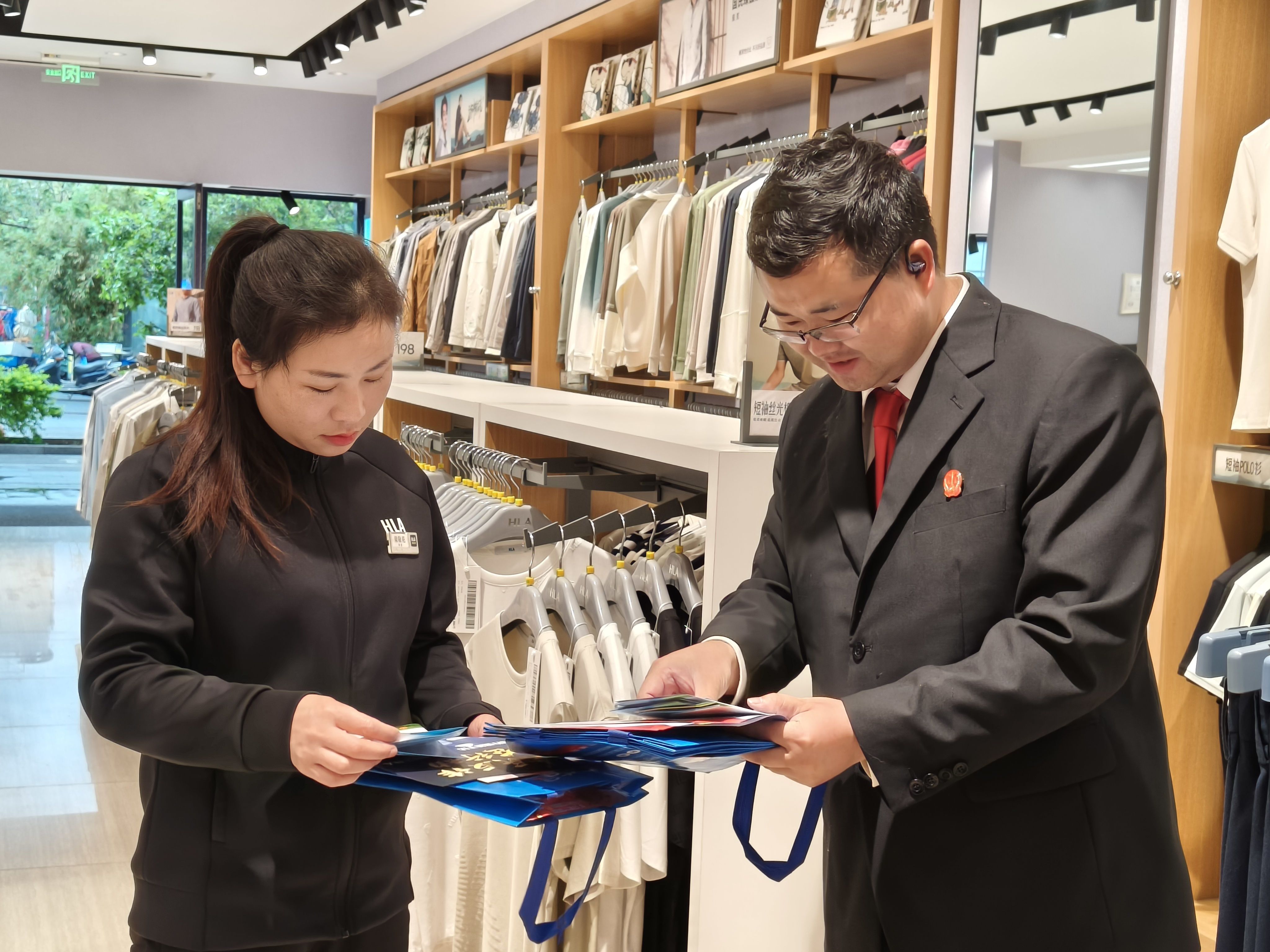 活动中,法院干警还向周边商户发放宣传手册,倡导商户自觉诚信经营,共筑消费安全。