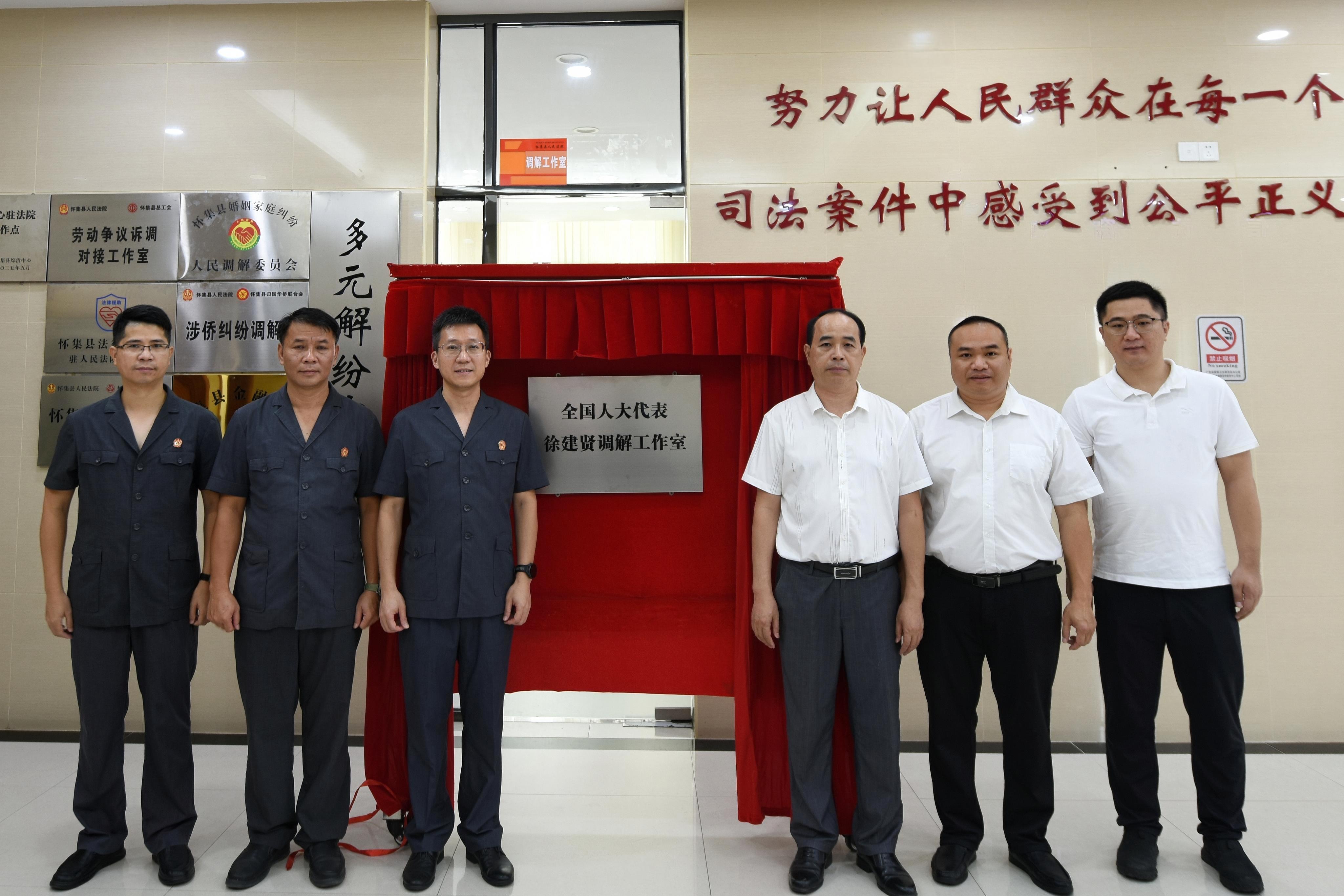 (怀集县人大常委会、县委政法委、县法院领导共同为“全国人大代表徐建贤调解工作室”揭牌。)