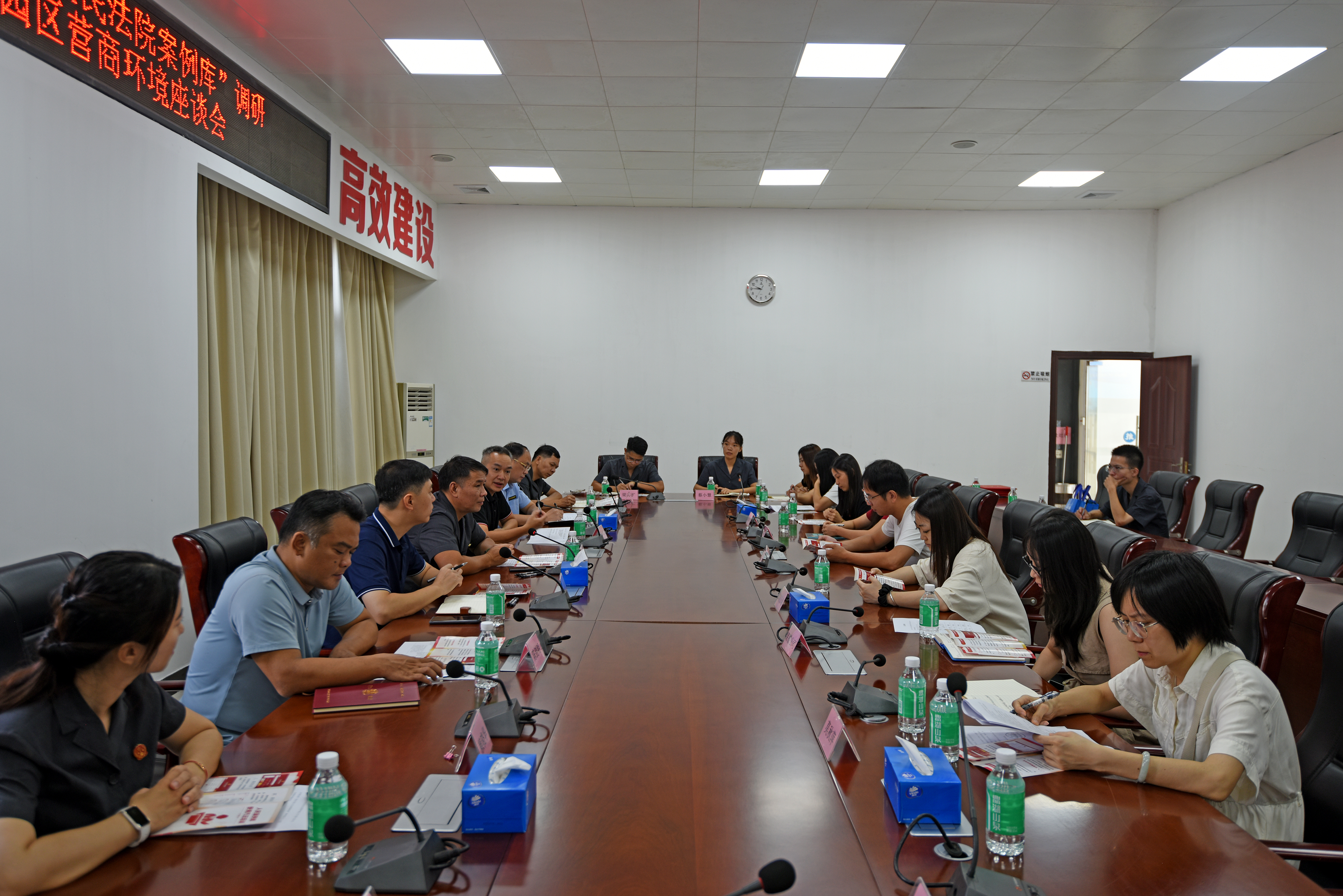 企业代表们围绕生产经营中遇到的法律问题、司法需求等畅所欲言。各职能单位认真倾听记录,逐一回应企业关切,并就如何进一步优化司法服务与企业代表深入交流探讨,力求精准对接企业需求,让司法服务更贴民心、更接地气。
