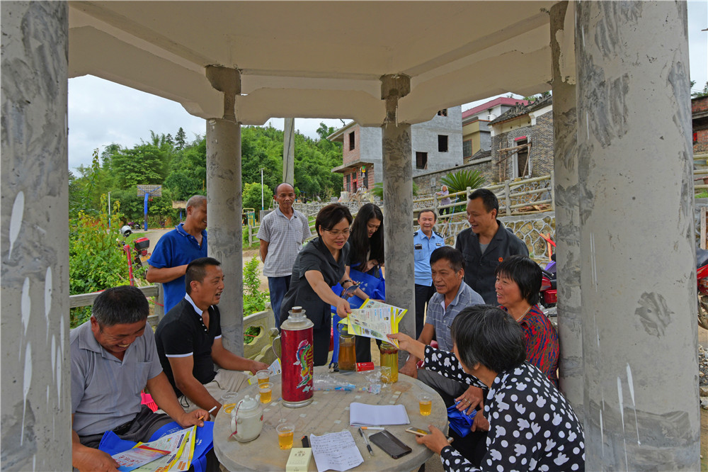 同时,在甘洒镇金龙村党群服务中心,我院干警还通过摆设摊位、派发禁毒宣传单张的方式,向过往村民群众宣传禁毒工作动态、毒品危害性、怎样识别毒品、预防毒品以及法律法规等知识, 让禁毒、识毒、拒毒的正能量不断传递。